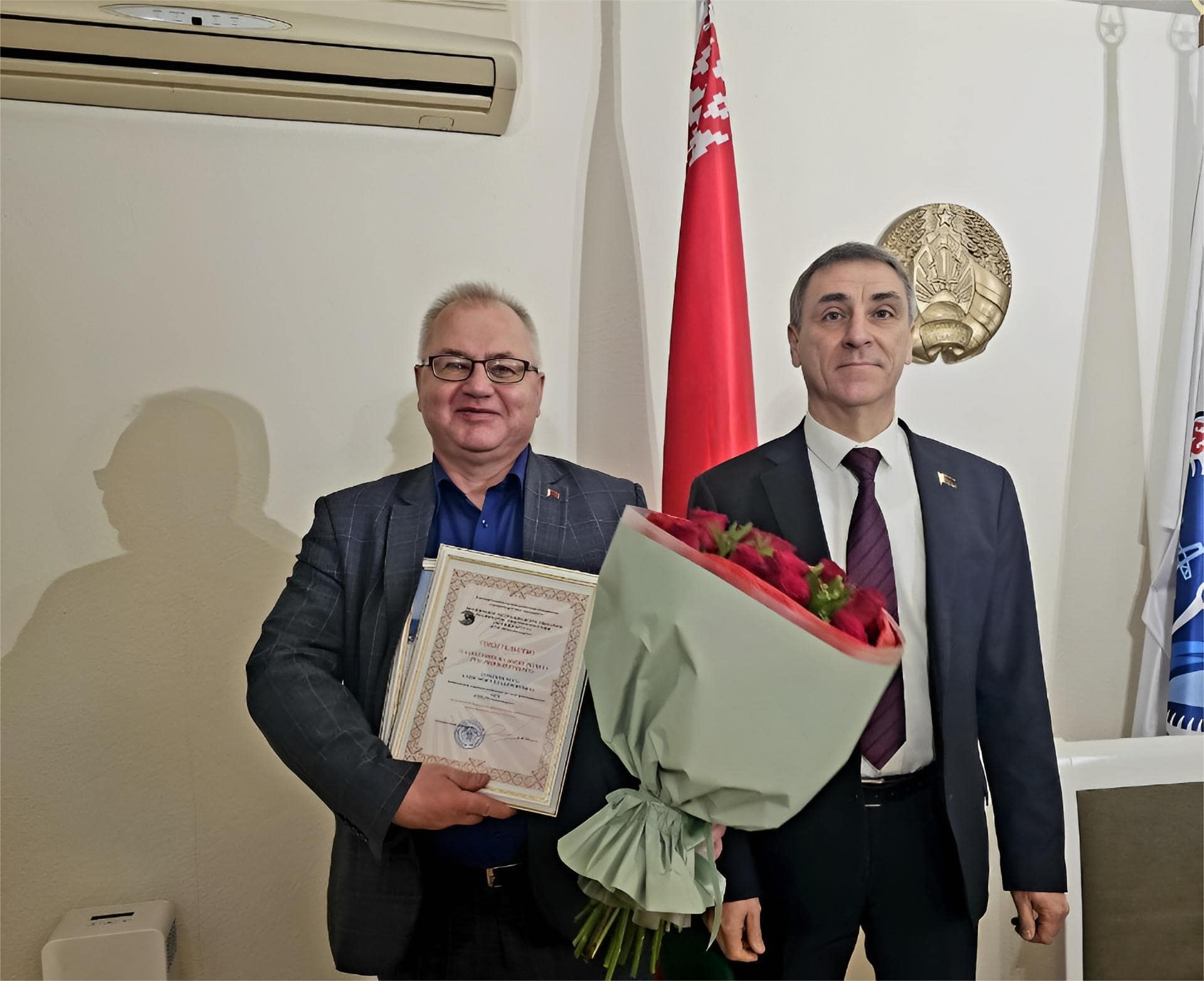 Торжественное вручение наград состоялось сегодня. Почетную грамоту и свидетельство о занесении на Доску почета Александру Давыдовскому вручил первый заместитель генерального директора — главный инженер РУП «Могилевэнерго» Александр Шишов.