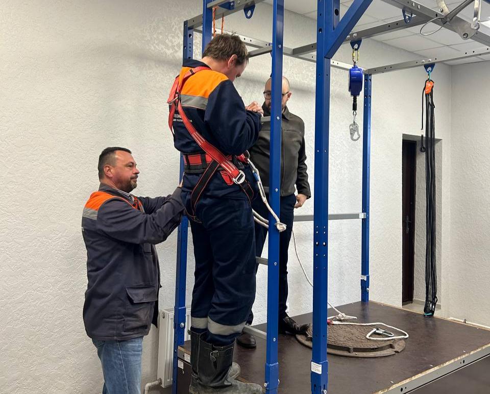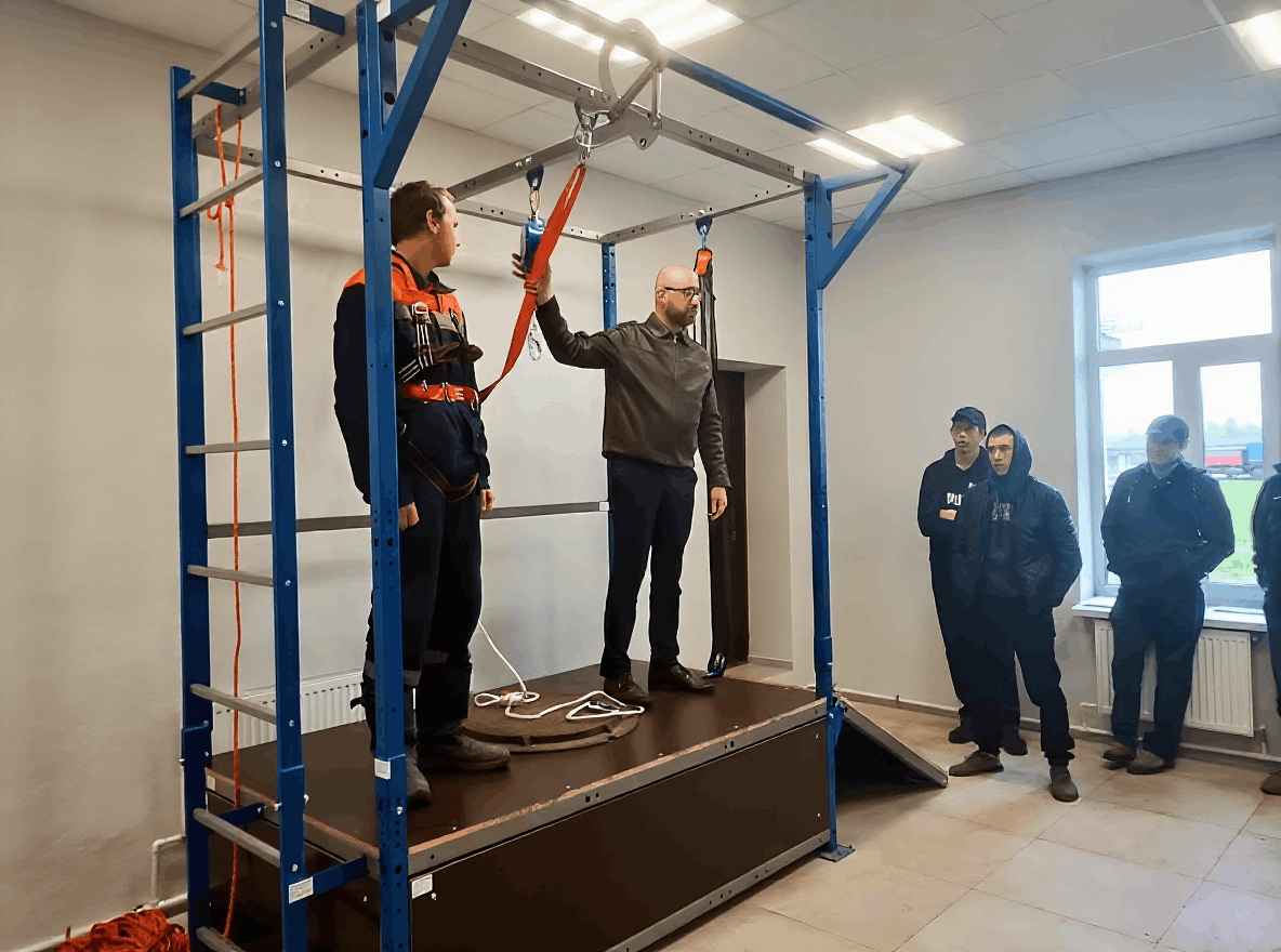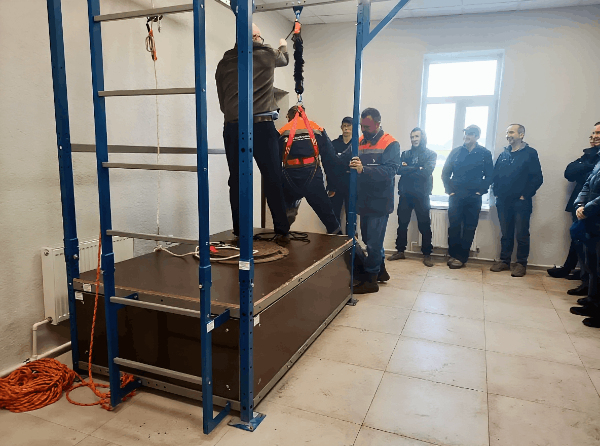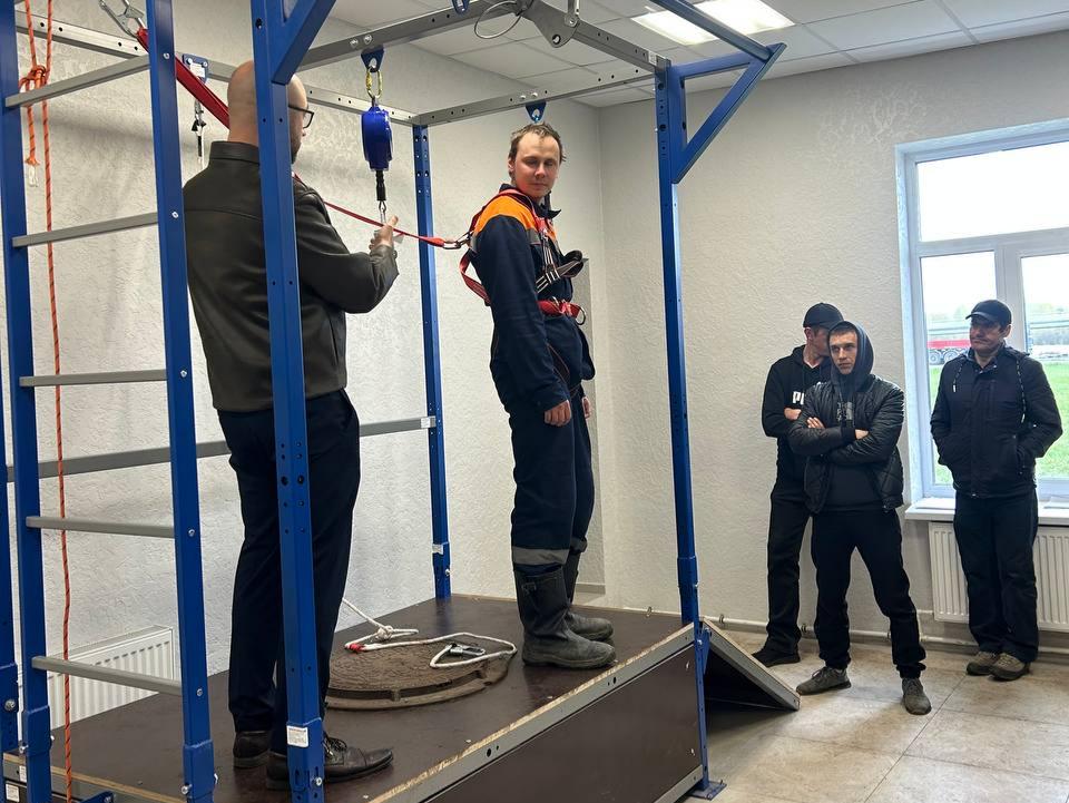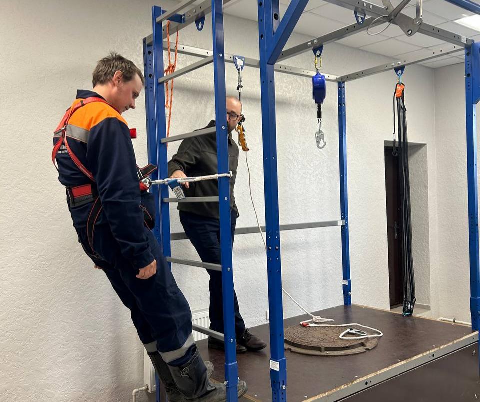 Для этих целей предприятие закупило учебно-тренировочный стенд «Высота», позволяющий персоналу не только отрабатывать навыки безопасного выполнения работ на высоте, но и проводить демонстрацию оборудования и снаряжения, применяемого в таких условиях.