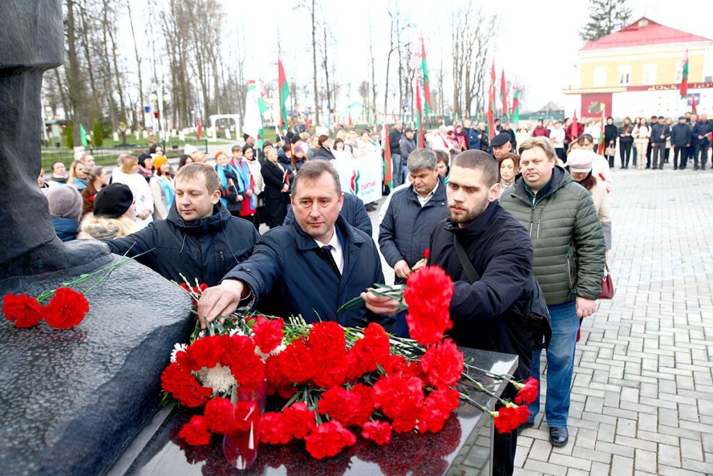 7 ноября на площади 50 лет Великого Октября в Климовичах прошел торжественный митинг, посвященный 108-й годовщине Великой Октябрьской социалистической революции. Праздничное мероприятие собрало руководство района, депутатов, представителей общественности, трудовых коллективов предприятий и организаций города.