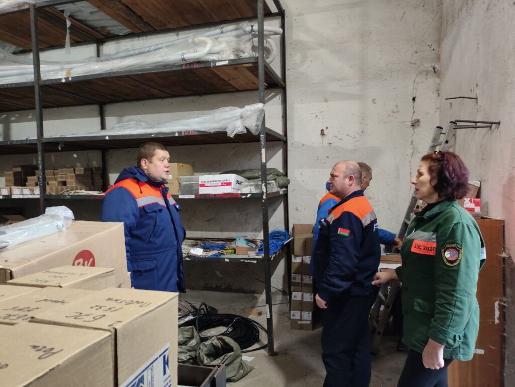 В ходе мероприятия комиссия в составе заместителя главного инженера Дмитрия Мурашко, председателя общественной комиссии по охране труда Артема Кашуро и председателя профсоюзного комитета Натальи Ермолайчик провела мониторинг складских помещений и подразделений филиала «Бобруйские электрические сети».