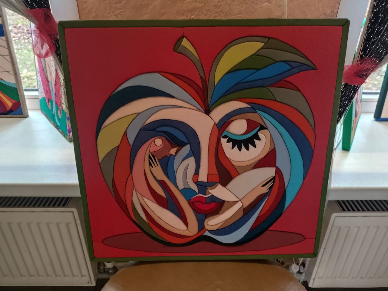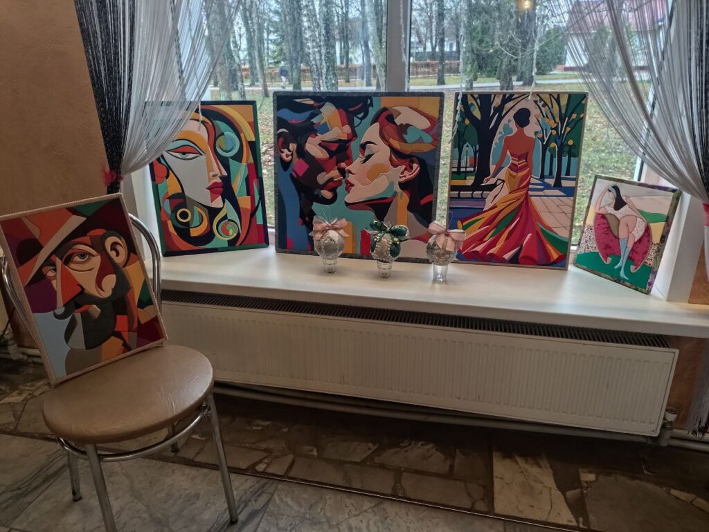 Гости с удовольствием общались, делились историями, шутили, танцевали и угощали друг друга своими кулинарными шедеврами. Настоящим украшением вечера стала выставка творческих работ Ирины Живнач, выполненных в технике кинусайга — изысканном японском искусстве создания панно из лоскутков ткани, которое нередко называют «пэчворком без иглы».