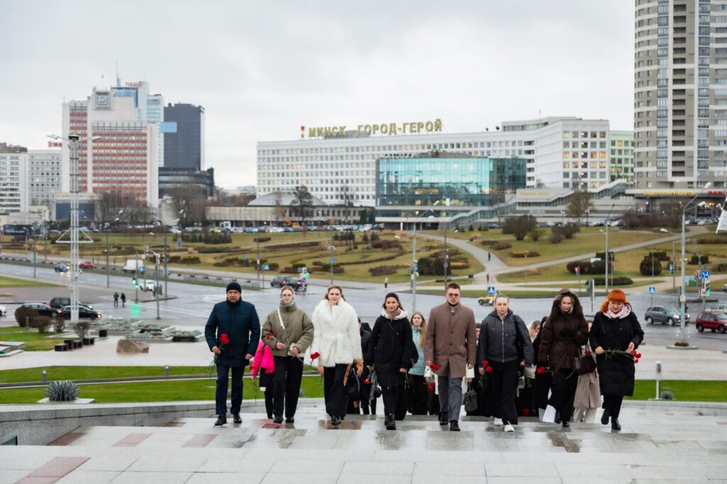 Церемония награждения стипендиатов состоялась в Зале Победы, а еще до начала официальной части виновники торжества побывали в штаб-квартире ФПБ и возложили цветы к стеле «Минск – город-герой».