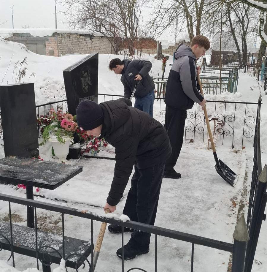 Ребята не только возложили цветы к памятнику, вооружившись лопатами и инвентарем, будущие энергетики тщательно расчистили могилу Олега Гринкевича от снега и привели в порядок прилегающую территорию.