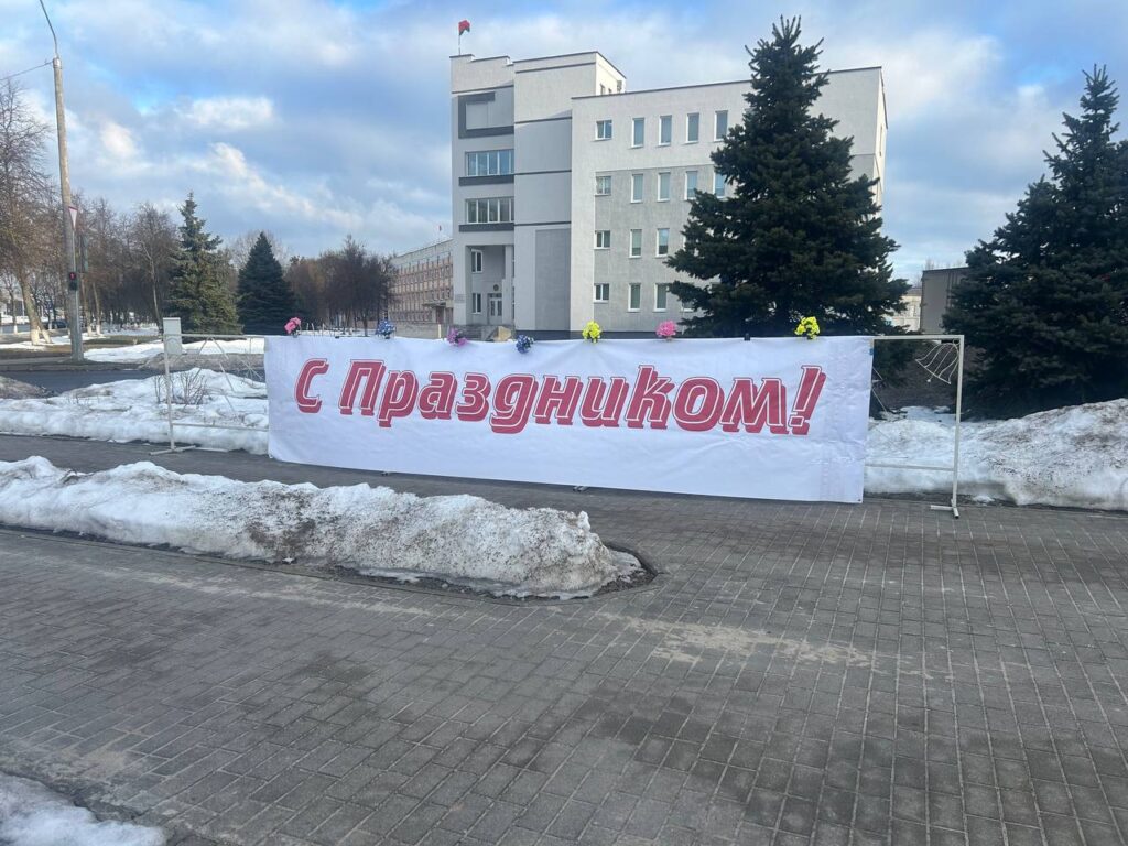 Ранним утром, еще до начала рабочего дня, в шесть часов утра, перед зданием филиала появилась большая праздничная растяжка с теплой надписью «С праздником!». Такой знак внимания сразу создавал атмосферу торжества и дарил хорошее настроение всем, кто приходил на работу.