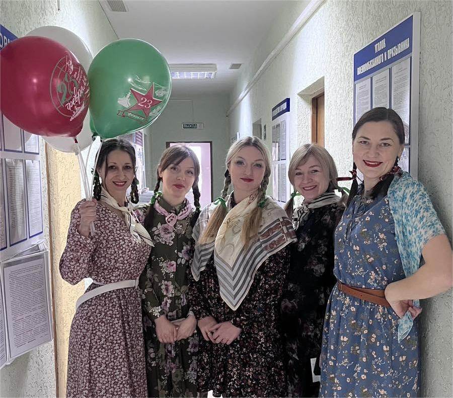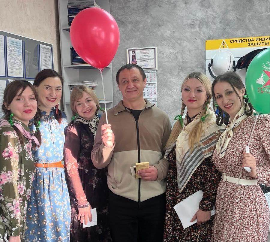 С самого утра сотрудницы филиала встречали своих коллег-мужчин в образах 40-х годов — в платьях военного времени. Атмосфера праздника, искренние улыбки и теплые слова создали особое настроение и стали приятным сюрпризом для всего коллектива.