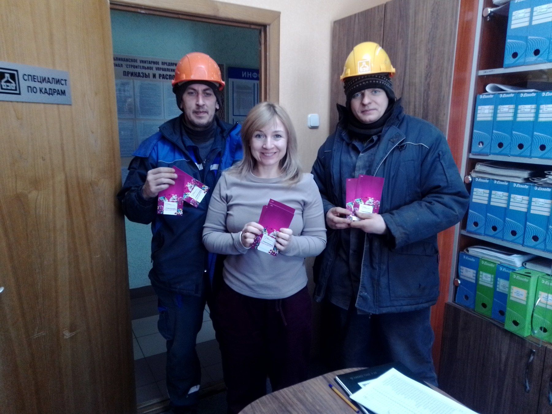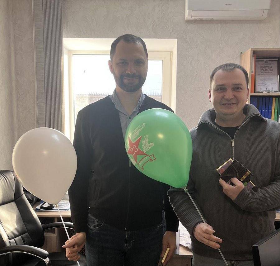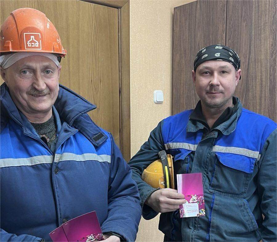 Для мужчин было подготовлено праздничное поздравление, наполненное словами благодарности и признательности. К поздравлениям присоединилась и первичная профсоюзная организация, которая подготовила для всех сотрудников памятные подарки – сертификаты магазина «Мила».