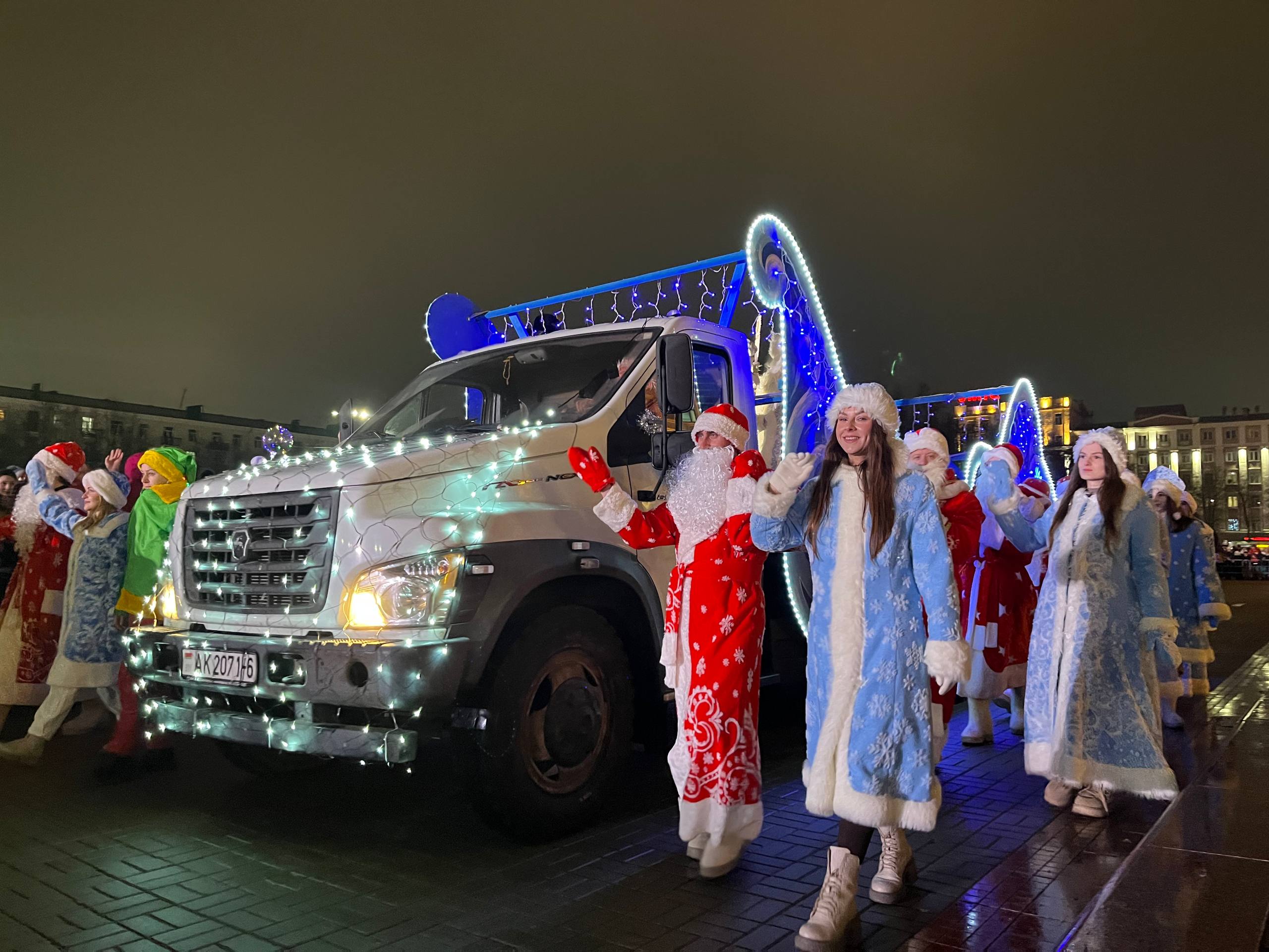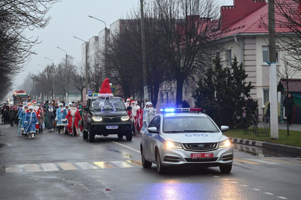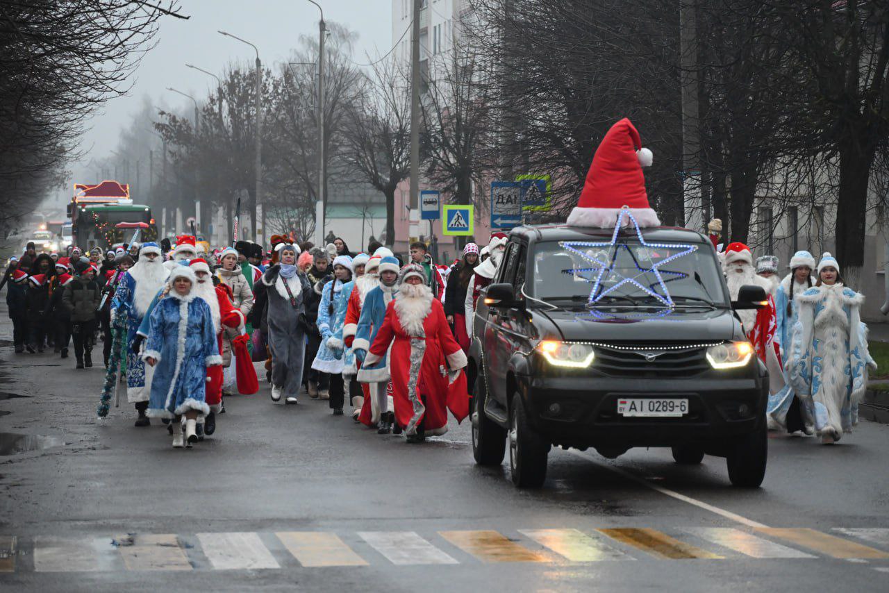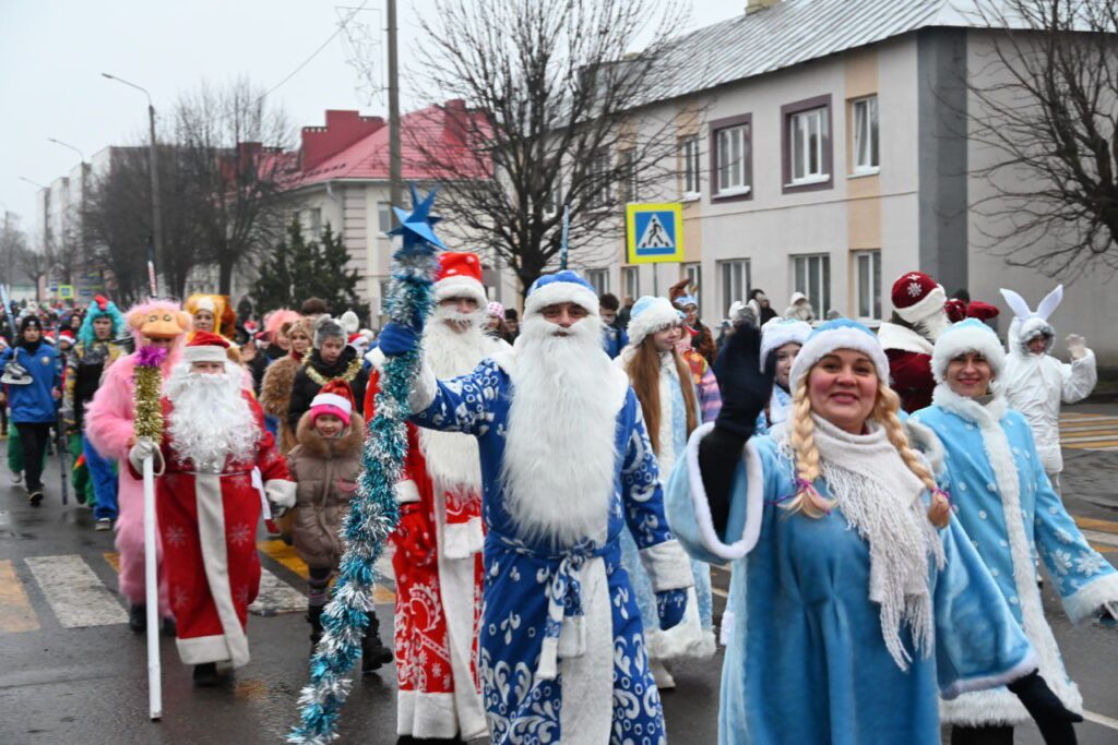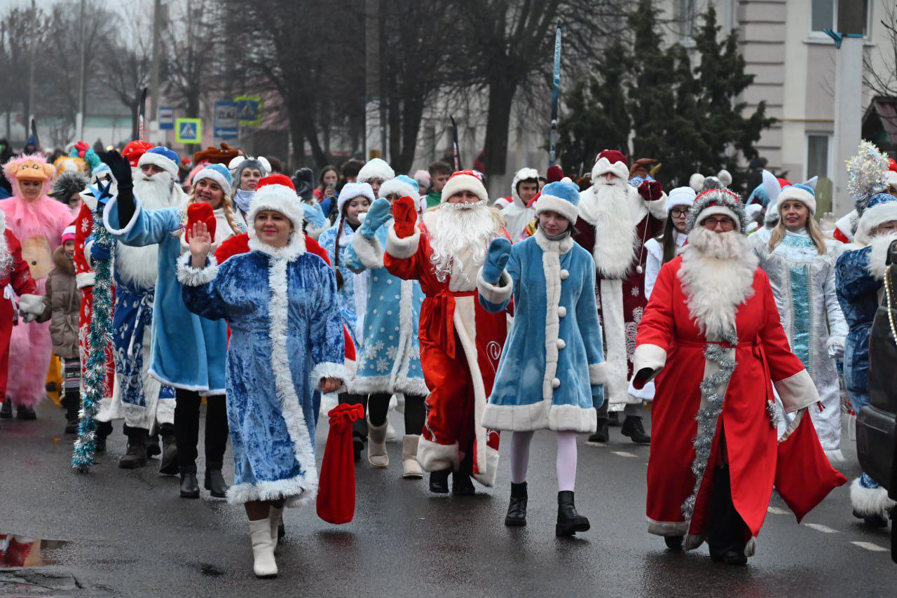 Праздничные шествия Дедов Морозов, Снегурочек и других сказочных персонажей прошли сразу в нескольких городах области — Глуске, Бобруйске и Могилеве, подарив жителям атмосферу настоящего зимнего волшебства.
